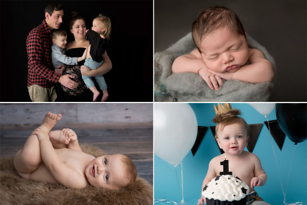 $500.00 (plus GST) This package includes 4 sessions for your little one – Maternity, Newborn, 6 months, and one year. It includes a set of 24 beautiful birth announcement cards, a hanging photo ornament or 3D photo name plate and a gorgeous premium flush mounted, leather bound album with a selection of photos from all of your sessions (album worth $600).